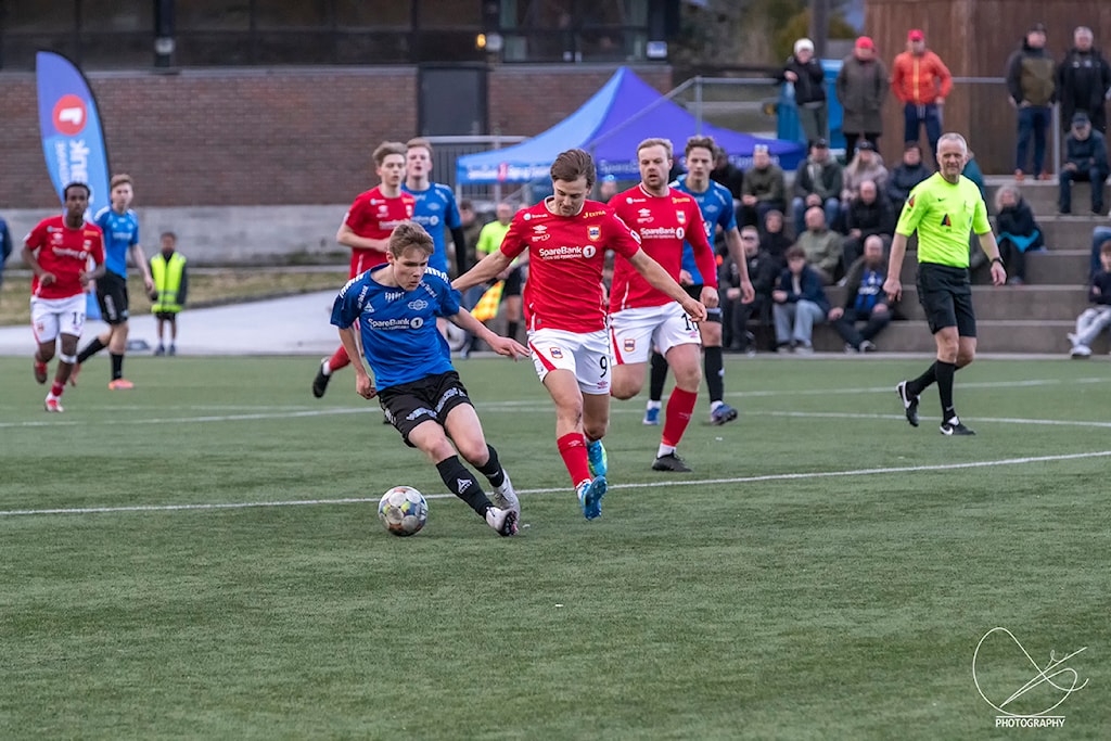 Inn mot kampen så var fokuset å våge mer med ball i laget. Stå tettere med det bakre leddet og beholde ballen med å bygge opp lengre angrep. I starten lykkes vi godt med det, står etter i duellene og har kvalitet i pasningsspillet. Høyang spiser seg etter hvert mer og mer inn i kampen og etablerer angrep de også. Vi slet til tider med det høge presset vårt der vi ikkje klarer å være samlet nok og flytte etter med lagdelene. De gangene vi kommer til målsjanser gjør vi sånn som vi ønsker å fremstå med å få tydelige spillvendinger inne sentralt eller ute bredt. Både Håvard og Daniel treffer metallet i 1. omgang. På avslutningen til Håvard setter Daniel returen i mål men blir avvinket for offside.