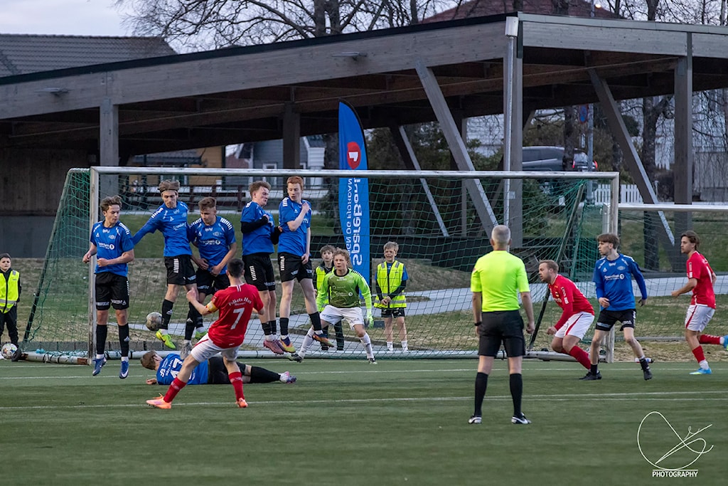 Rett før pause så får vi en corner som blir klarert først. Elias vinner duellen i returrommet, får den inn igjen i feltet og Leander drar fram en veldig god avslutning i lengste hjørnet som ender i mål! Håpet var å holde på ledelsen til pause, men vi lykkes nesten ikke. Først et balltap på egen banehalvdel som gjør at de kommer alene igjennom. Heldigvis for oss går avslutninga utenfor. Men ikke lenge etter bommer vi i det høge presset som gjør at de igjen kan spille bak oss. Spissen deres kommer alene mot Petter, men han står stødig bakerst og gjør to veldig gode redninger på rappen, slik at vi holder på ledelsen til pause.